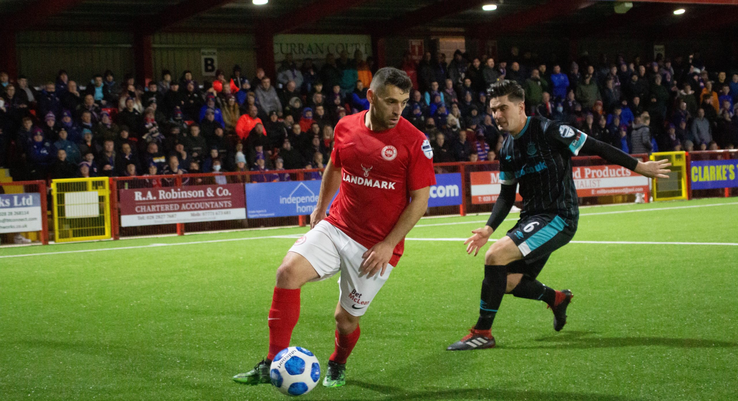 As the half went on the visitors continued to pin Larne into their own half as the Inver Reds struggled to get any reasonable spell of possession. However, they were managing to remain solid at the back and restricted David Healy’s side to few chances themselves.